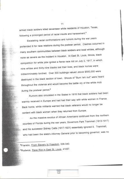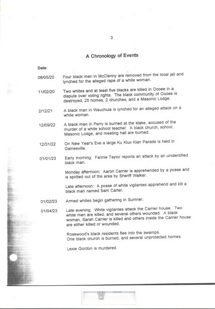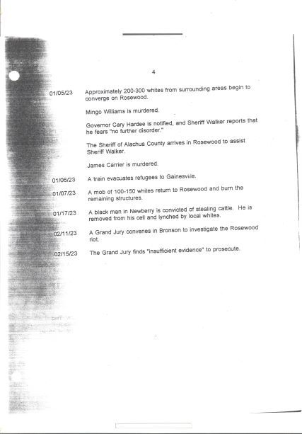 - A documented history of the 1923 Rosewood incident with detailed reports from investigators who gathered firsthand accounts of the violent events. The document includes testimony and findings from those who were involved, offering insight into the tragic racial violence that occurred in the town of Rosewood.