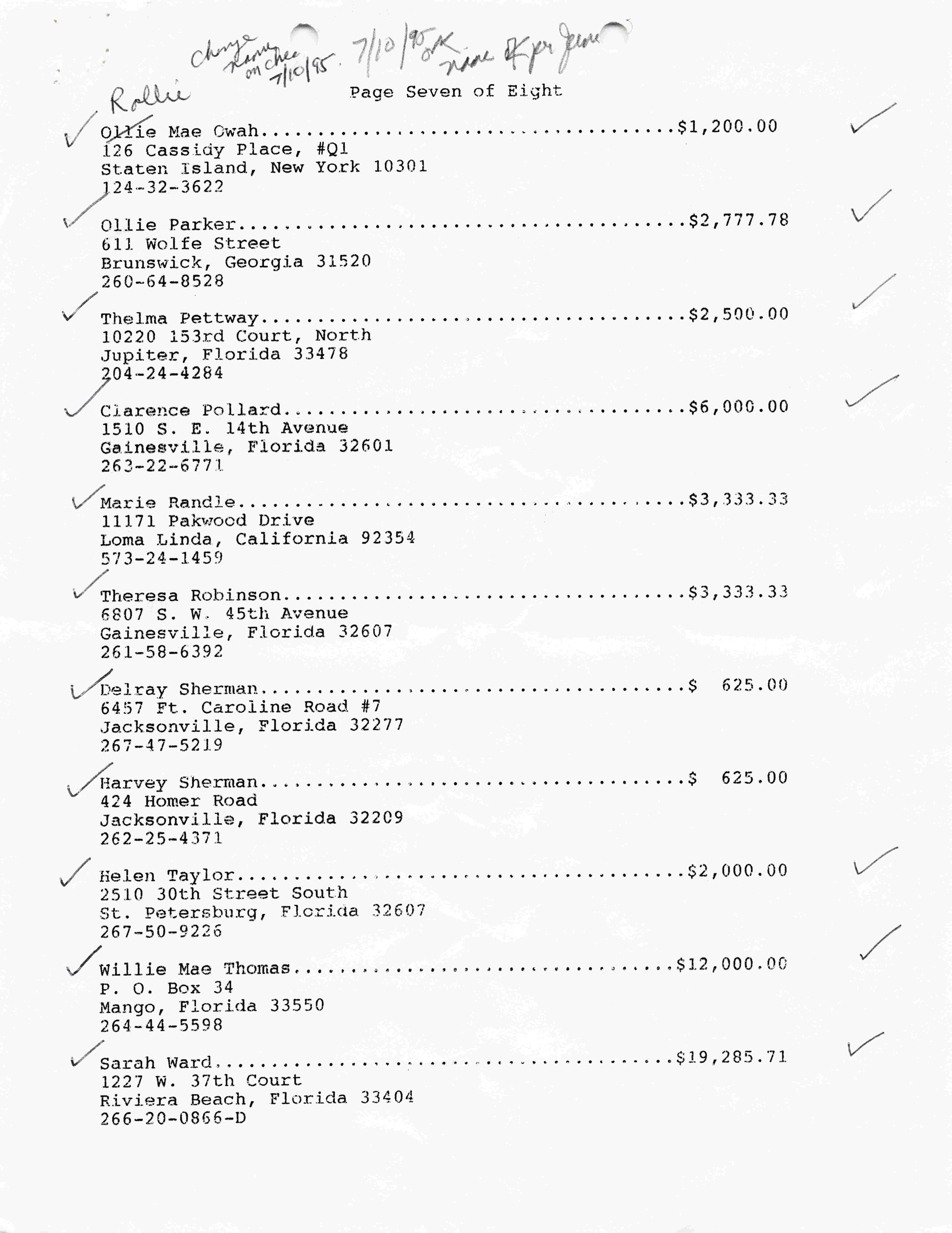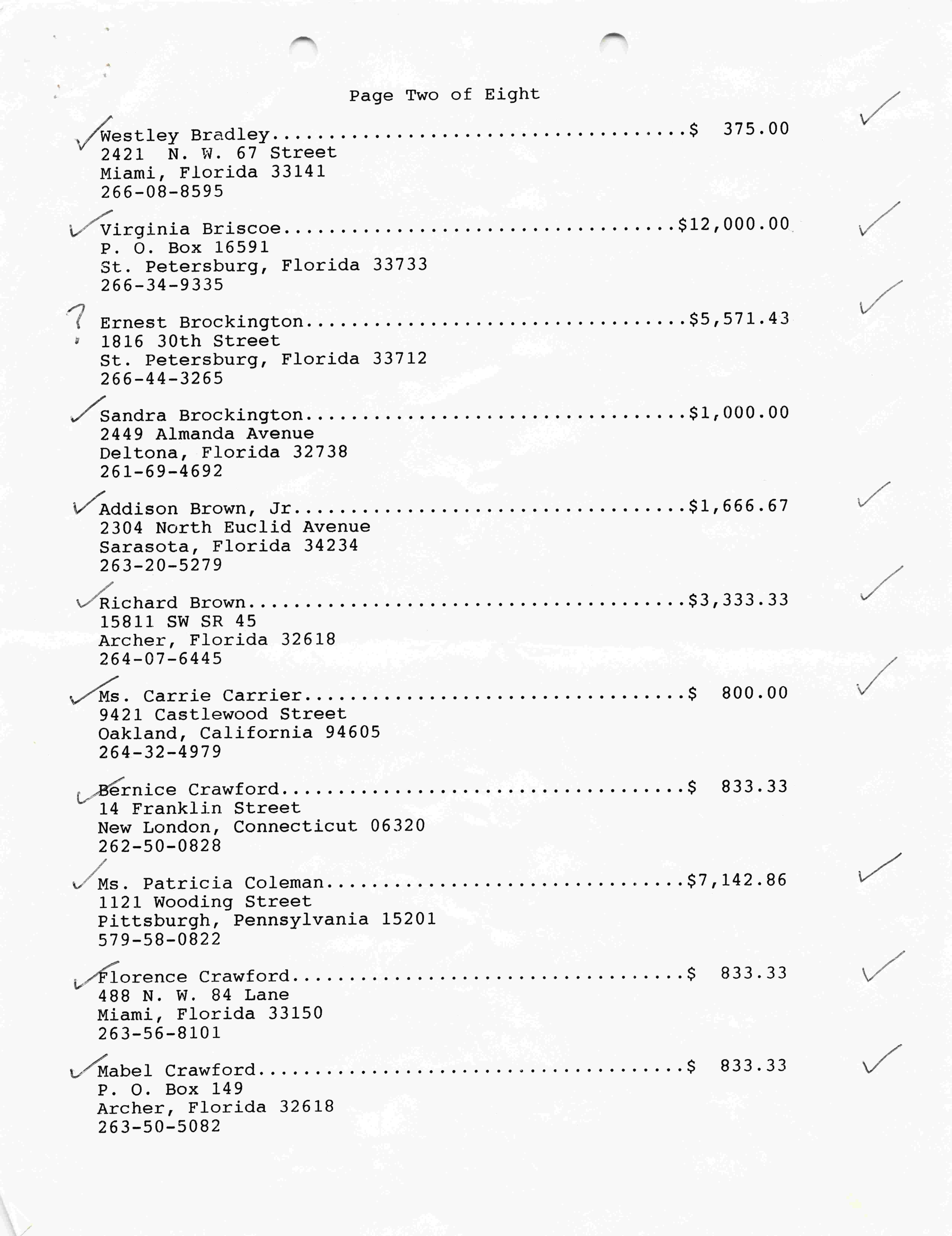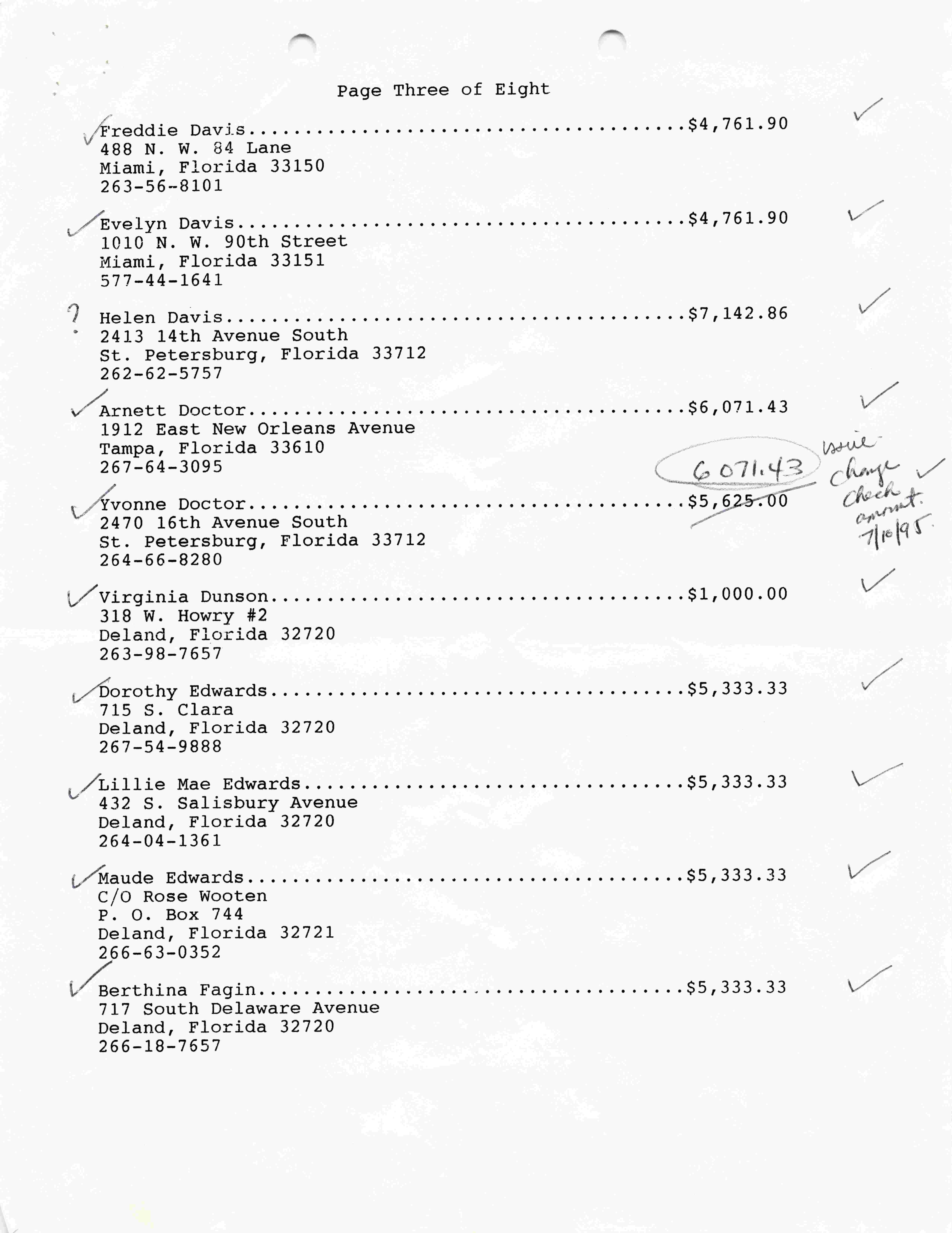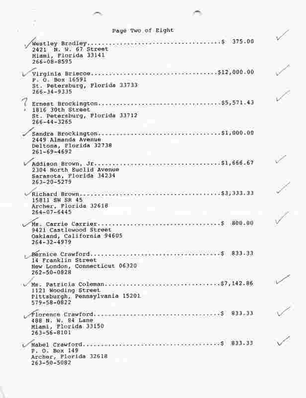 Compensation Amounts for the Rosewood Survivors and Descendants