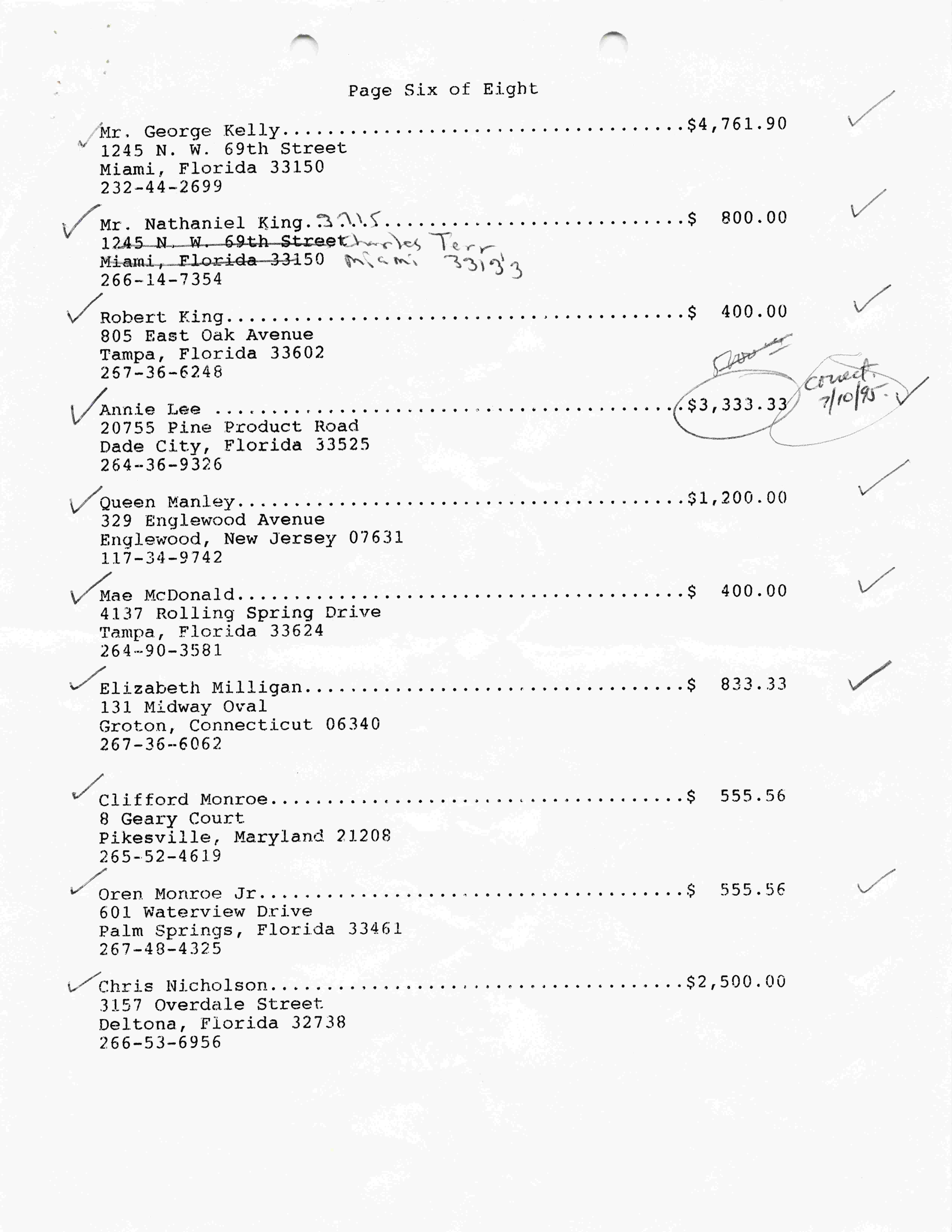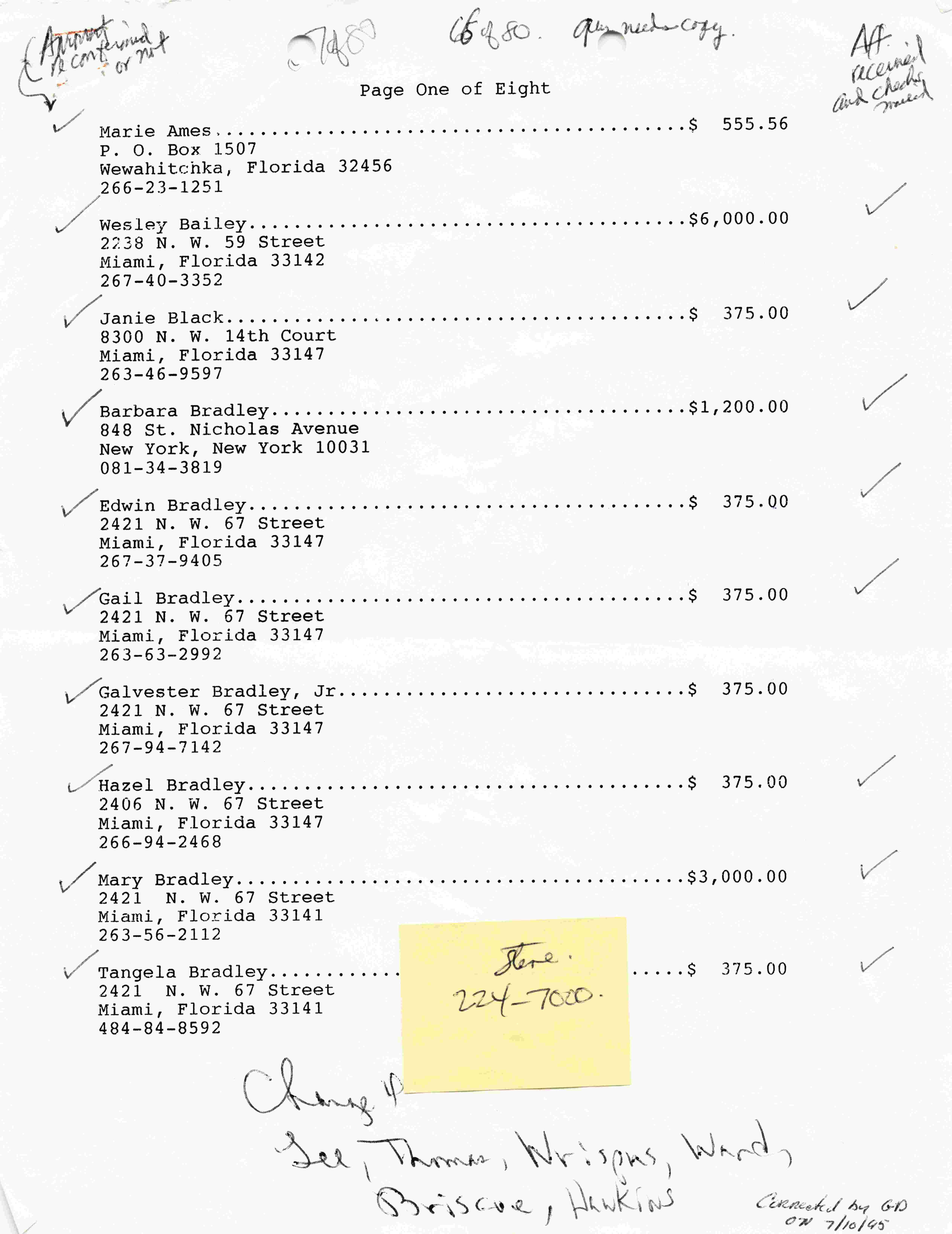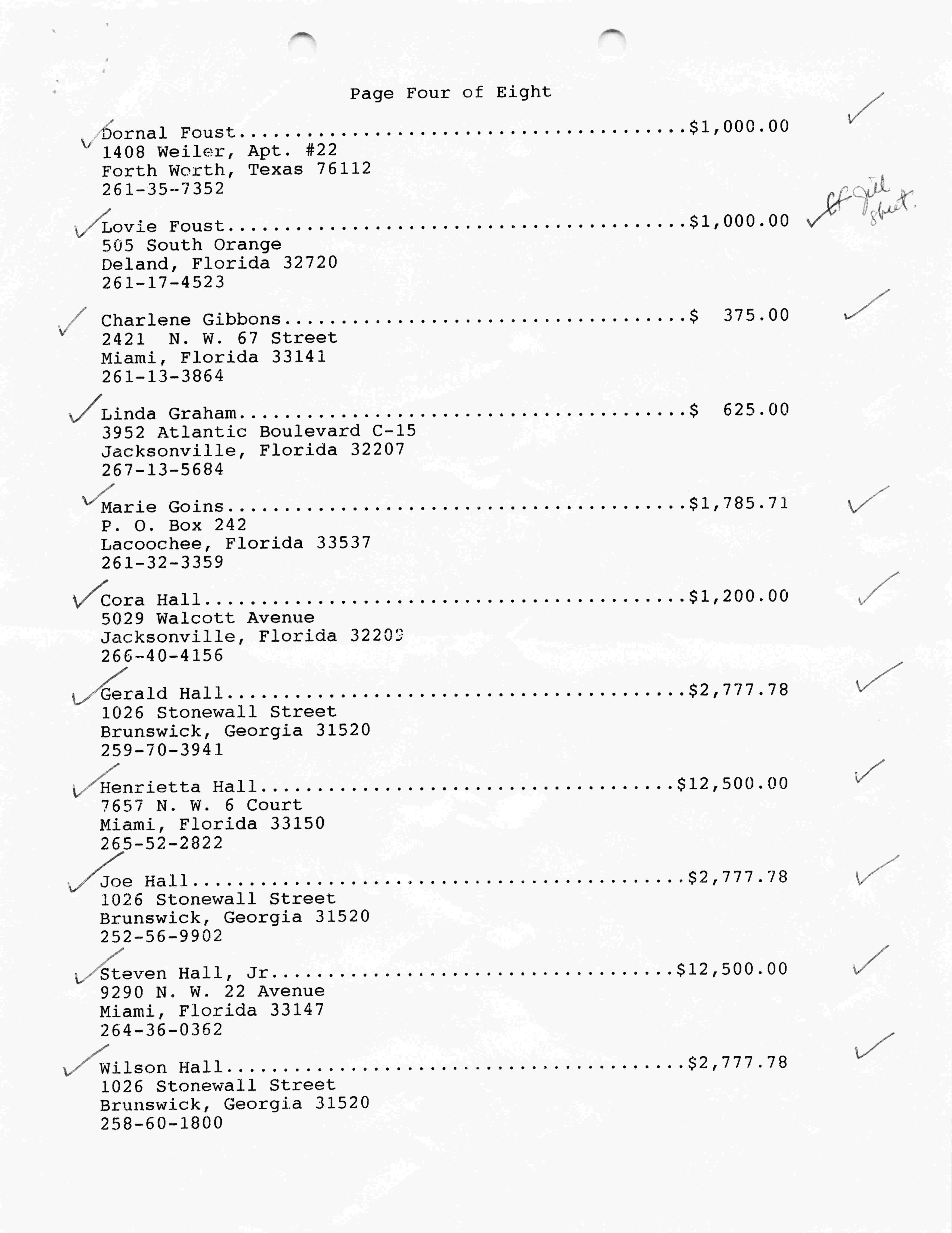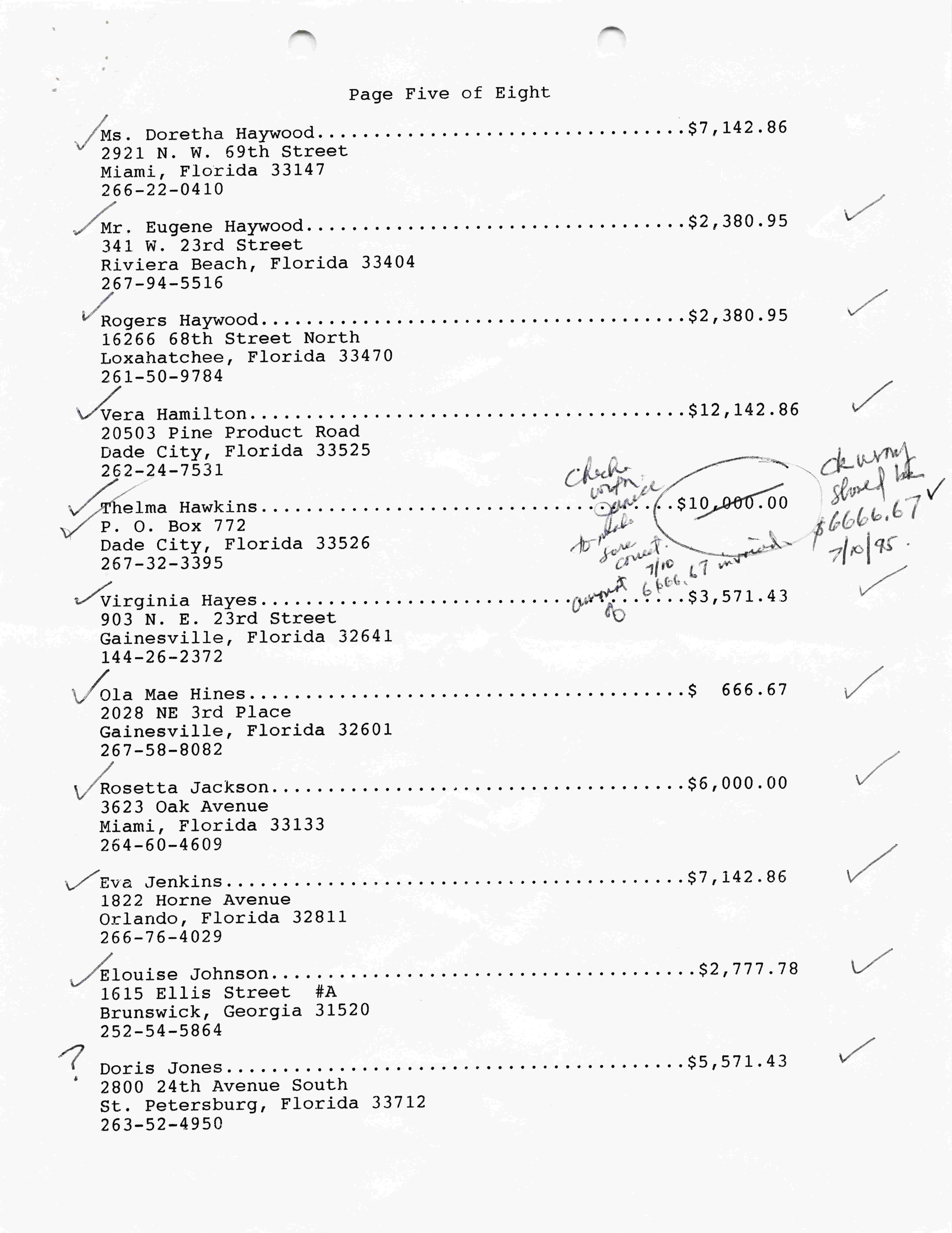 Compensation Amounts for the Rosewood Survivors and Descendants