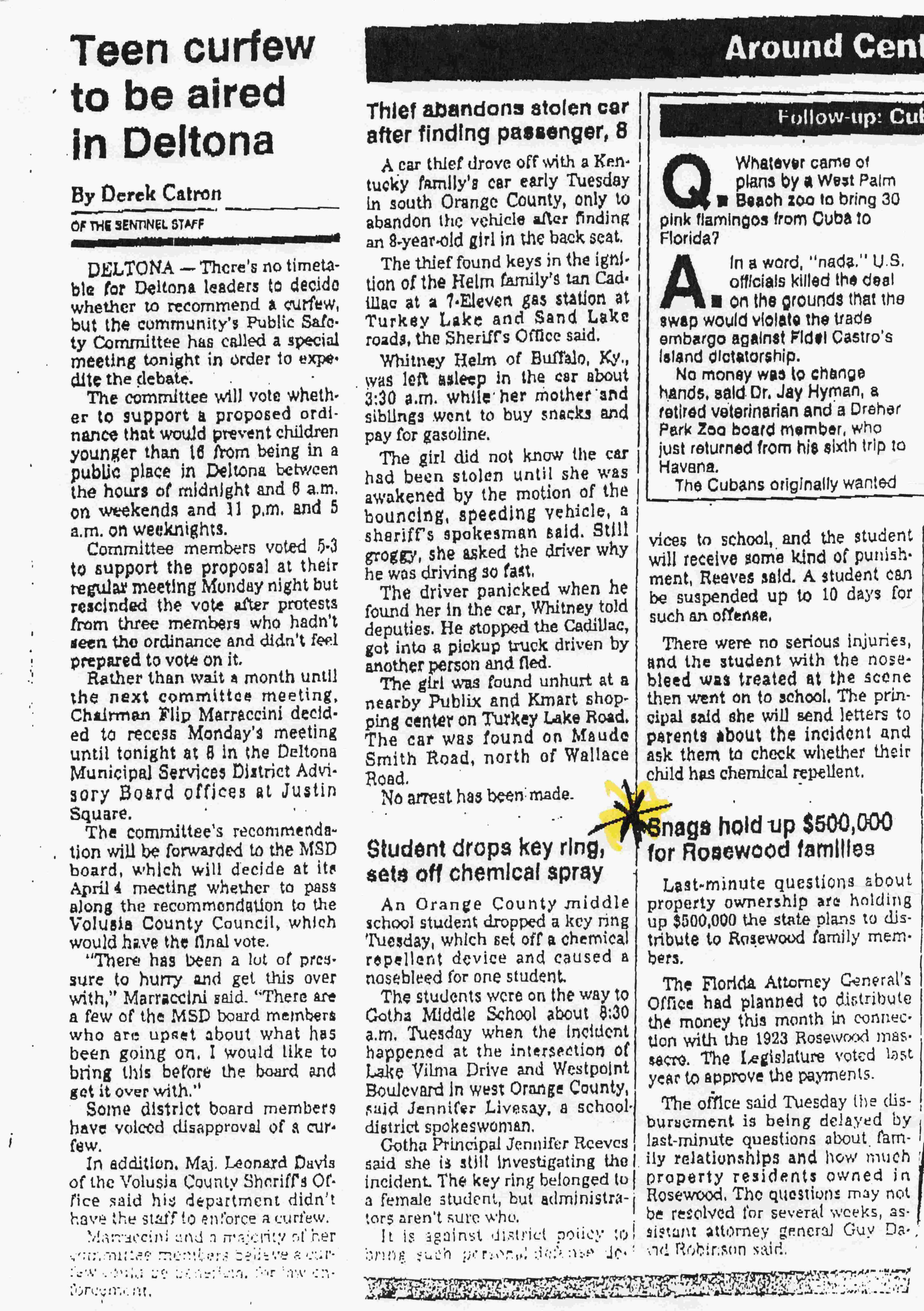 Newspaper Article: Sun-Sentinel - Snags Hold Up $500,000 for Rosewood Families