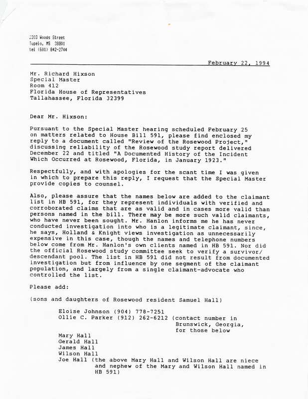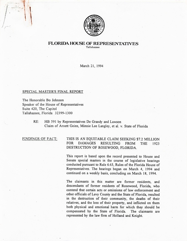 Special Master Hearing on Rosewood Massacre Claims and Restitution