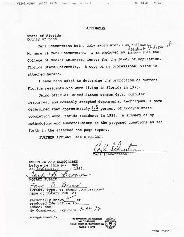 Sworn Statements from Survivors and Descendants of Rosewood