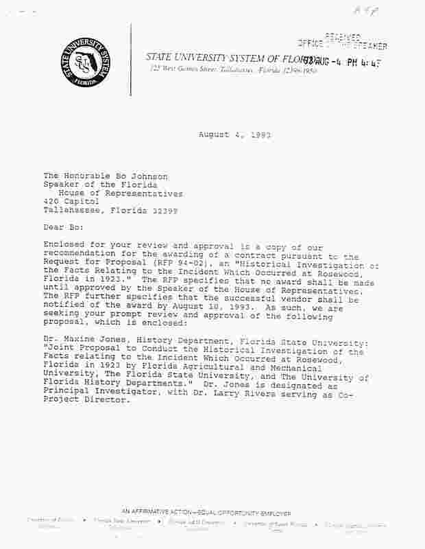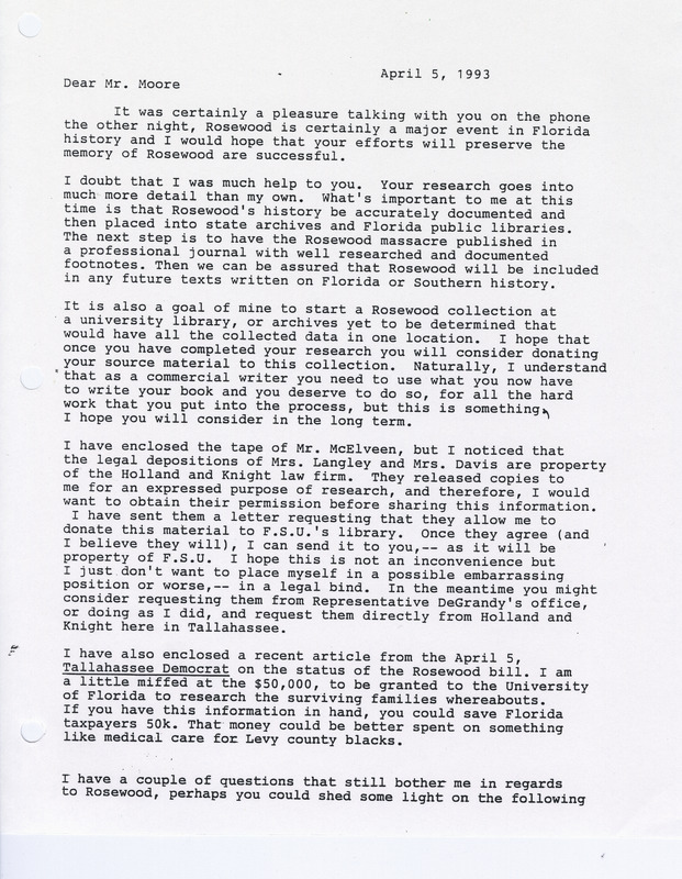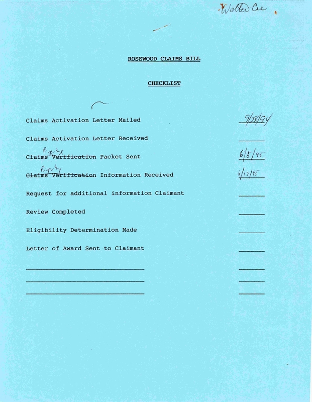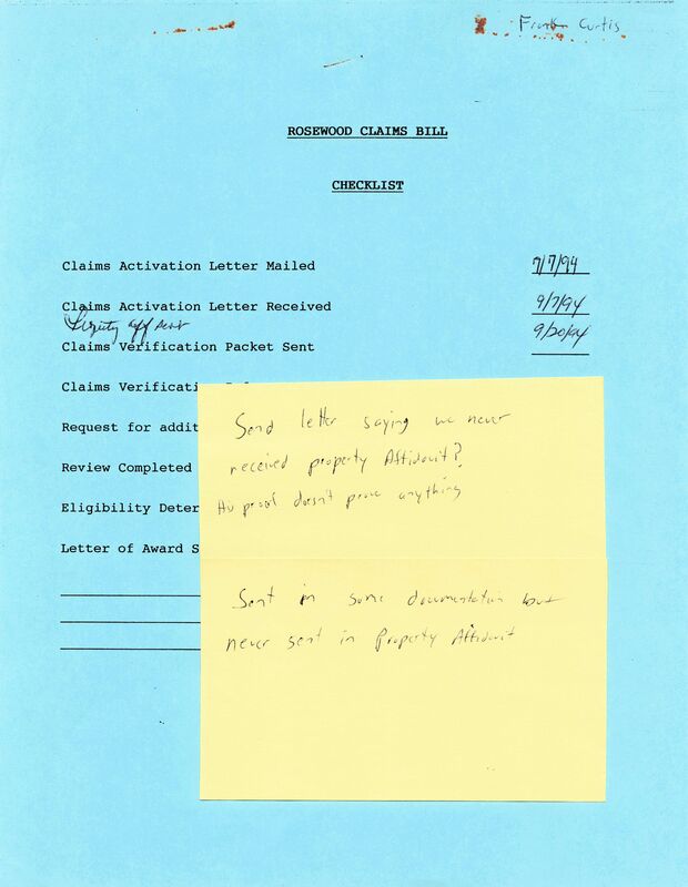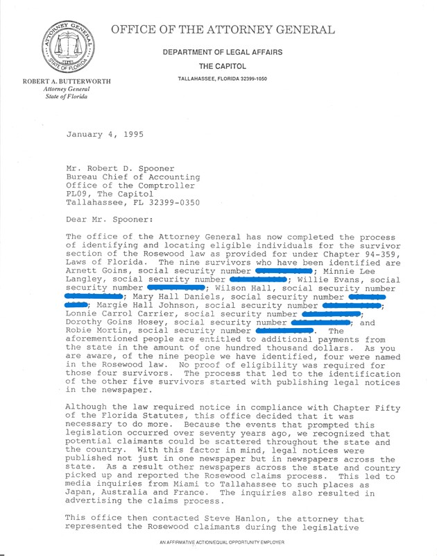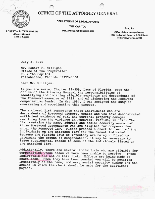 Correspondences Pertaining to the Rosewood Massacre Investigation and Claims