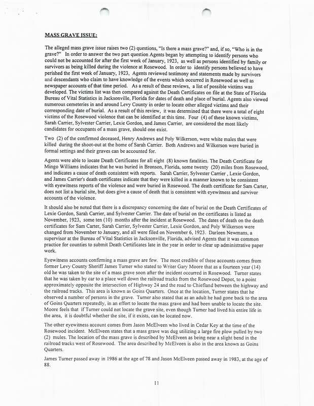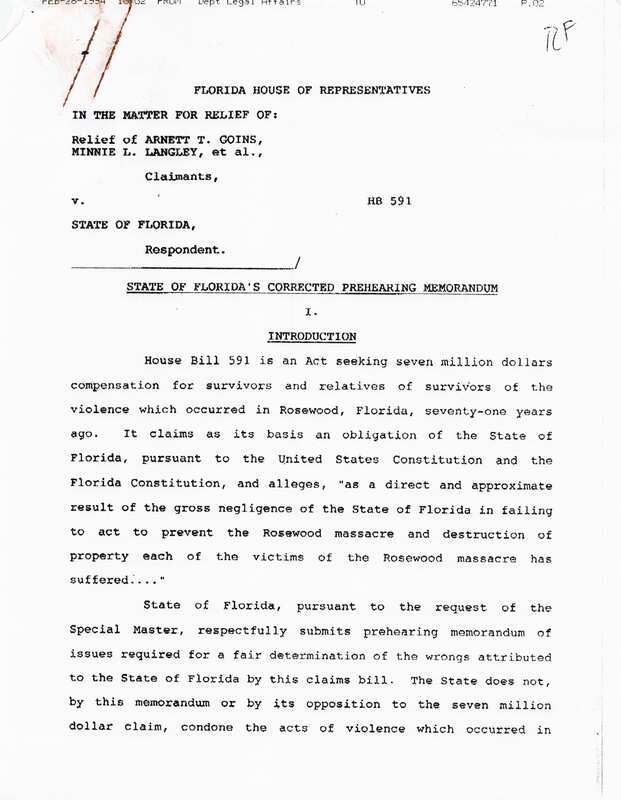 Amendments to Legislation Addressing the Rosewood Massacre