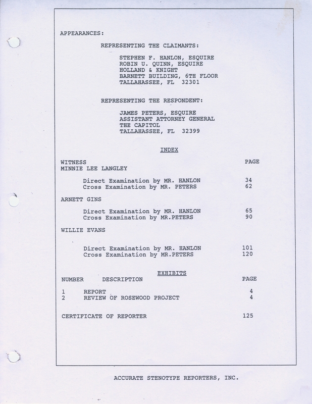Public Hearing Transcripts on Rosewood Massacre Claims and Restitution
