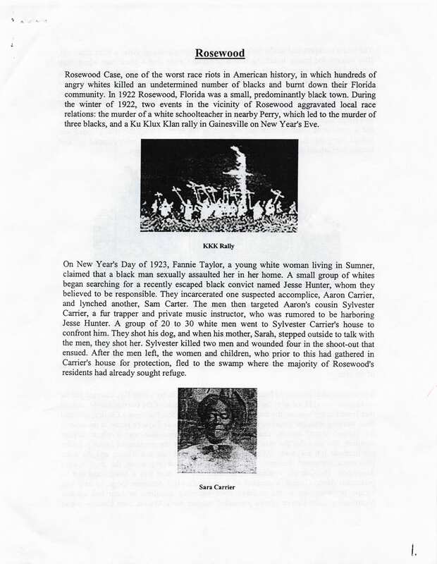 Brief Overview on the Events which Occurred during the 1923 Rosewood Massacre