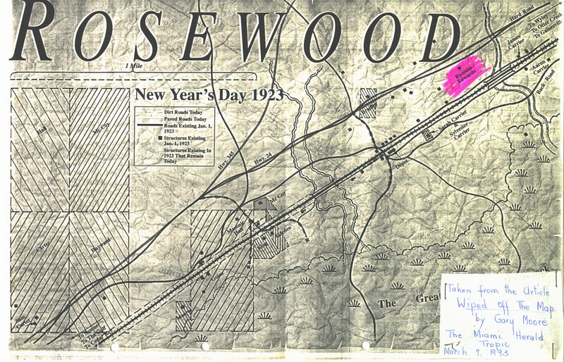 Wiped Off the Map : Map of Family Properties in Rosewood which were wiped from State Map