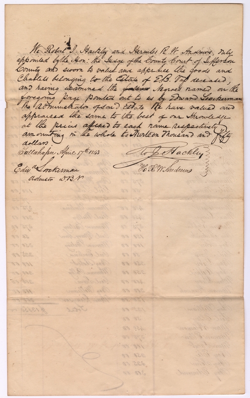 - Rare Slavery Documents - Brooke, Edmund Valuation and Appraisement
