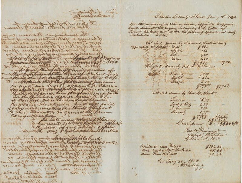 - This rare 1850 slave document from Robert Larkin's estate discusses the manner of the estate's distribution. The ledgers include descriptions and price breakdowns.