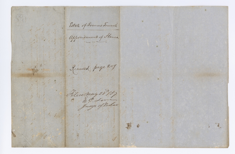 - This rare 1837 slave document from the Frances Towers estate lists some of the belongings of the estate and their prices.