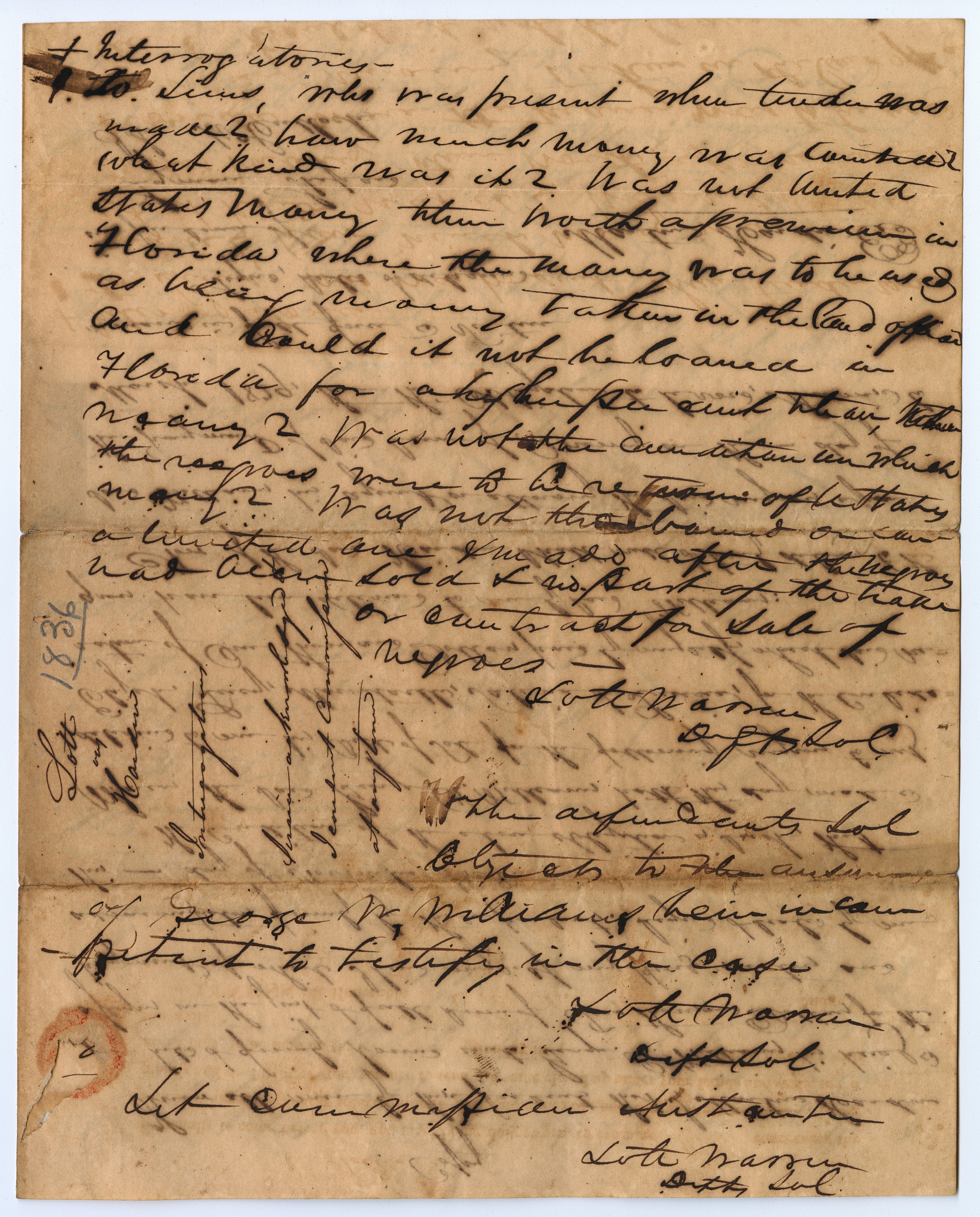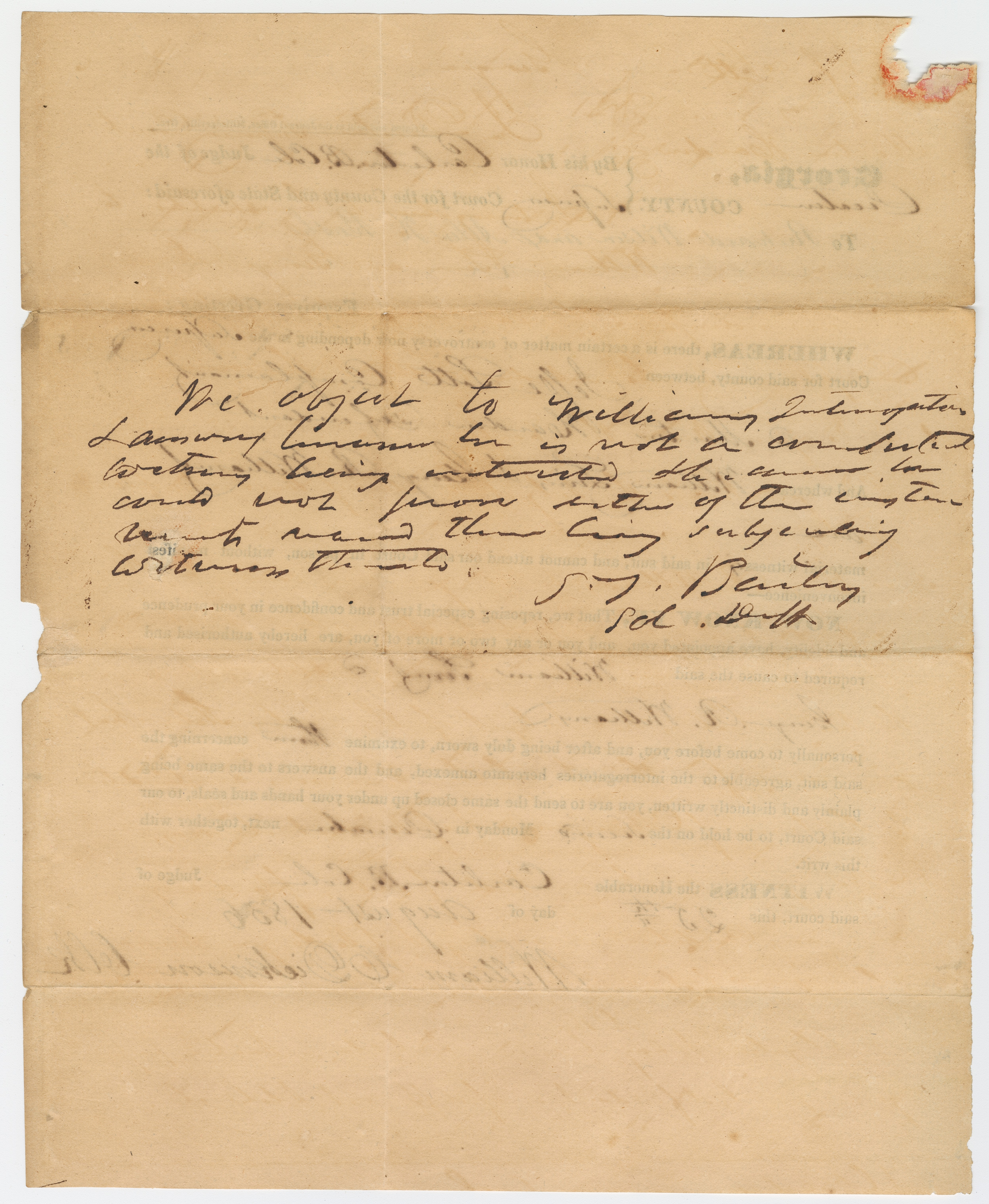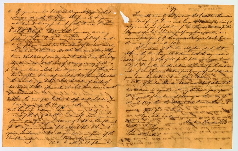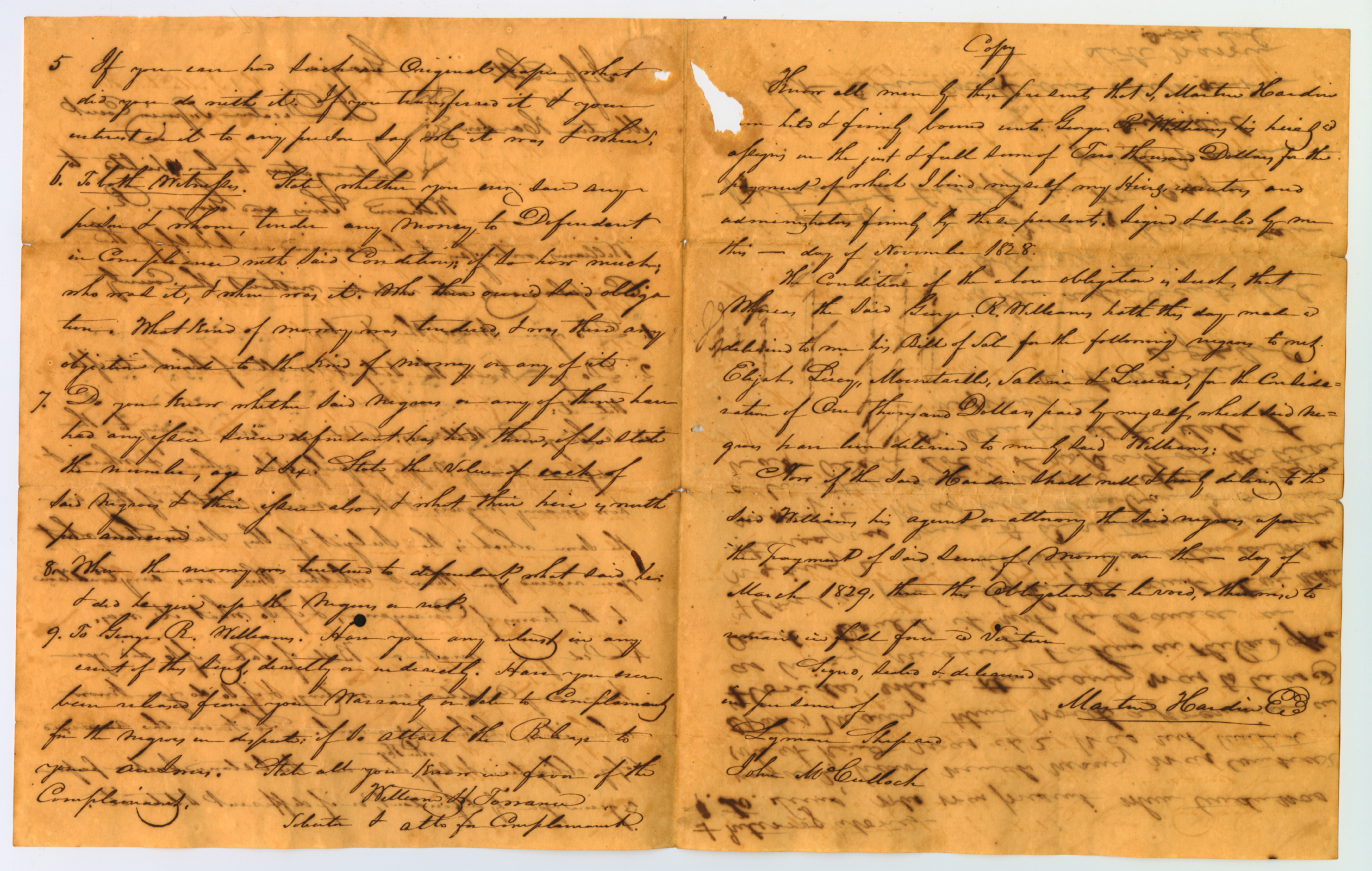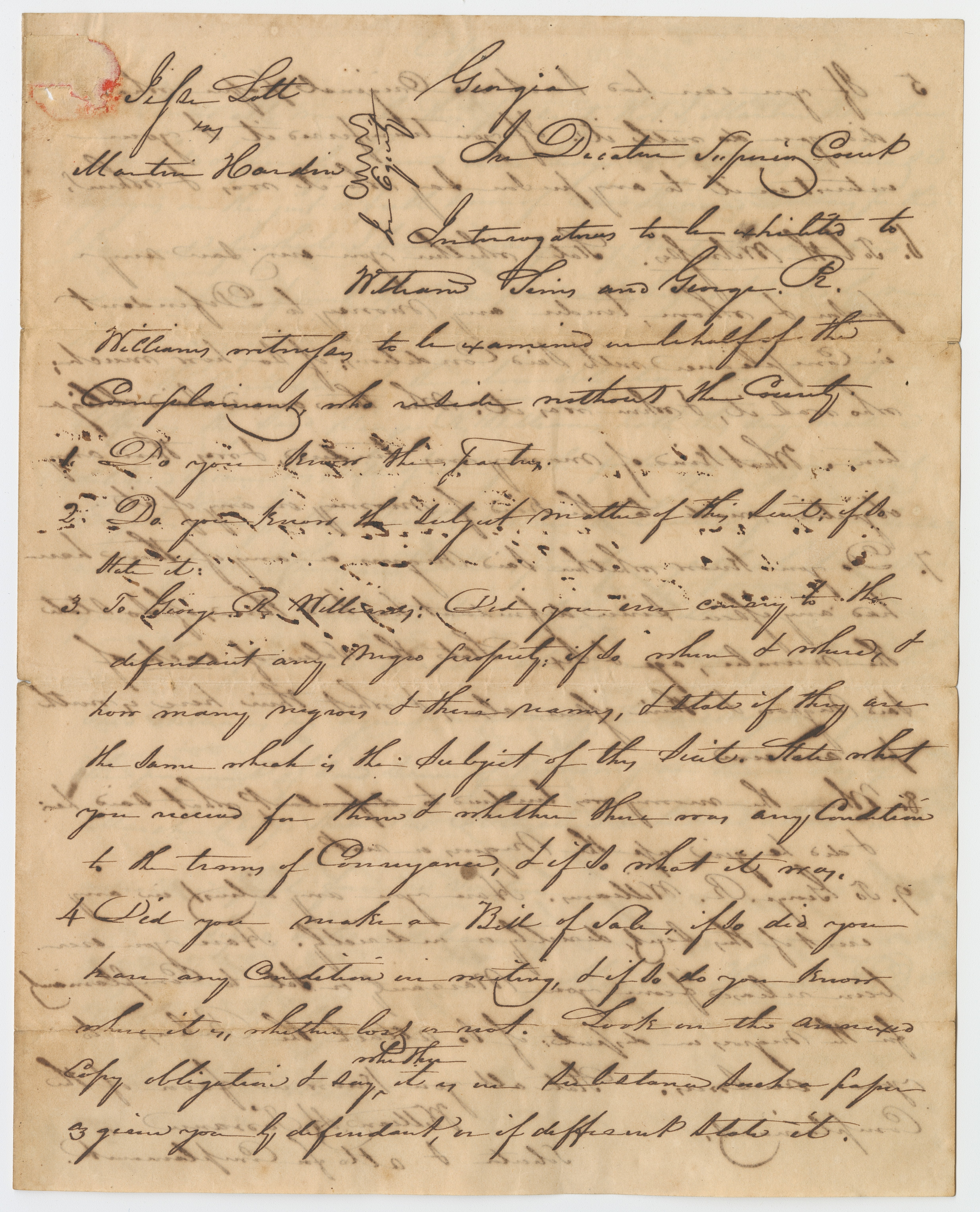 Part of Rare Slavery Documents - Lawsuit, Lott, Jesse (Complainant), Hardin, Martin (Defendant)